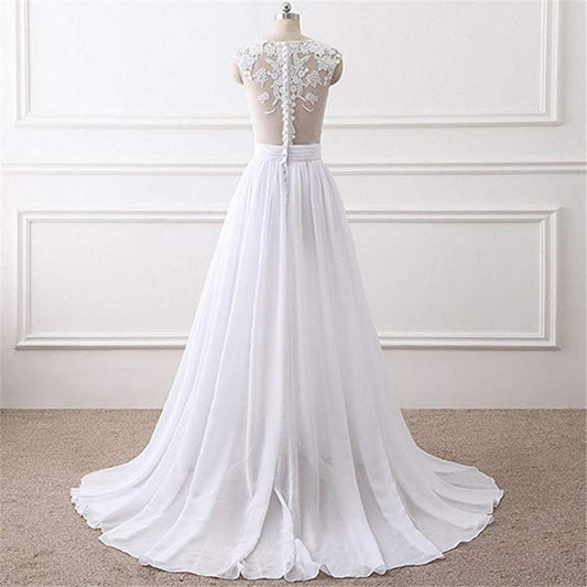 Robe de mariée simple en chiffon blanc avec fente, robes de soirée charmantes, robes de cérémonie.